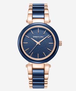 Kenneth Cole Accessories Women’s Two-tone Classic Ceramic Bracelet Watch | Blue & Rose Gold