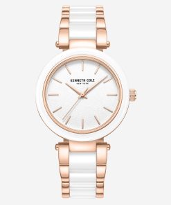 Kenneth Cole Accessories Women’s Two-tone Classic Ceramic Bracelet Watch | White & Rose Gold