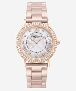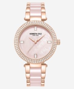 Kenneth Cole Accessories Women’s Two-tone Classic Ceramic Pearl Bracelet Watch | Pink & Rose Gold