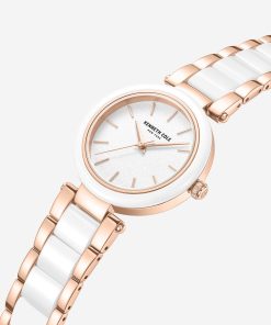 Kenneth Cole Accessories Women’s Two-tone Classic Ceramic Bracelet Watch | White & Rose Gold