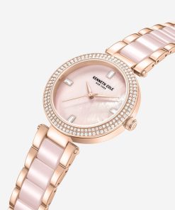 Kenneth Cole Accessories Women’s Two-tone Classic Ceramic Pearl Bracelet Watch | Pink & Rose Gold