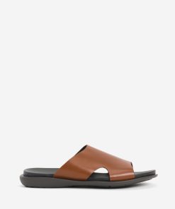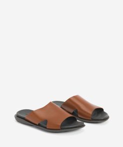 Kenneth Cole Men’s Shoes Sand-y Beach Leather Slide Sandal | Cognac