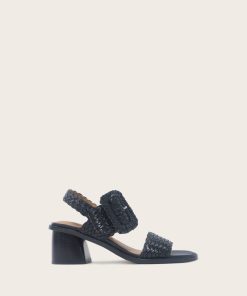 Kenneth Cole Women’s Shoes Gentle Souls – Madylyn Woven Leather Heel Sandal | Black Leather