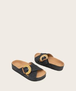 Kenneth Cole Women’s Shoes Gentle Souls – Louisa X Band Raffia Platform Slip On | Black Raffia
