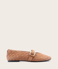 Kenneth Cole Women’s Shoes Gentle Souls – Winifred Suede Woven Mary Jane Flat | Camel Suede