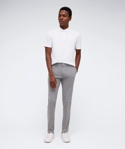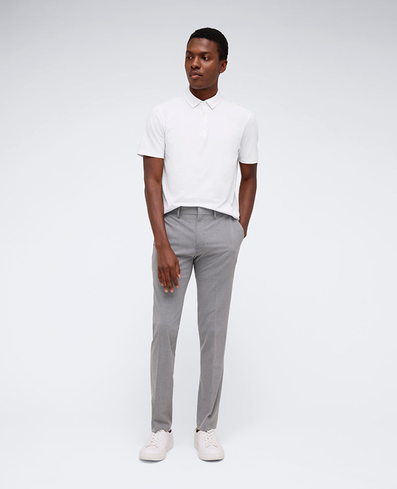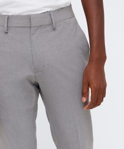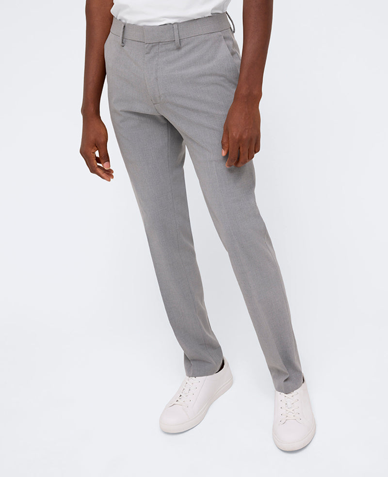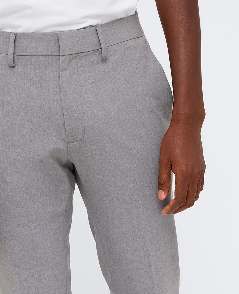 - Hook and bar closure for a seamless look in a flat front modern-fit silhouette