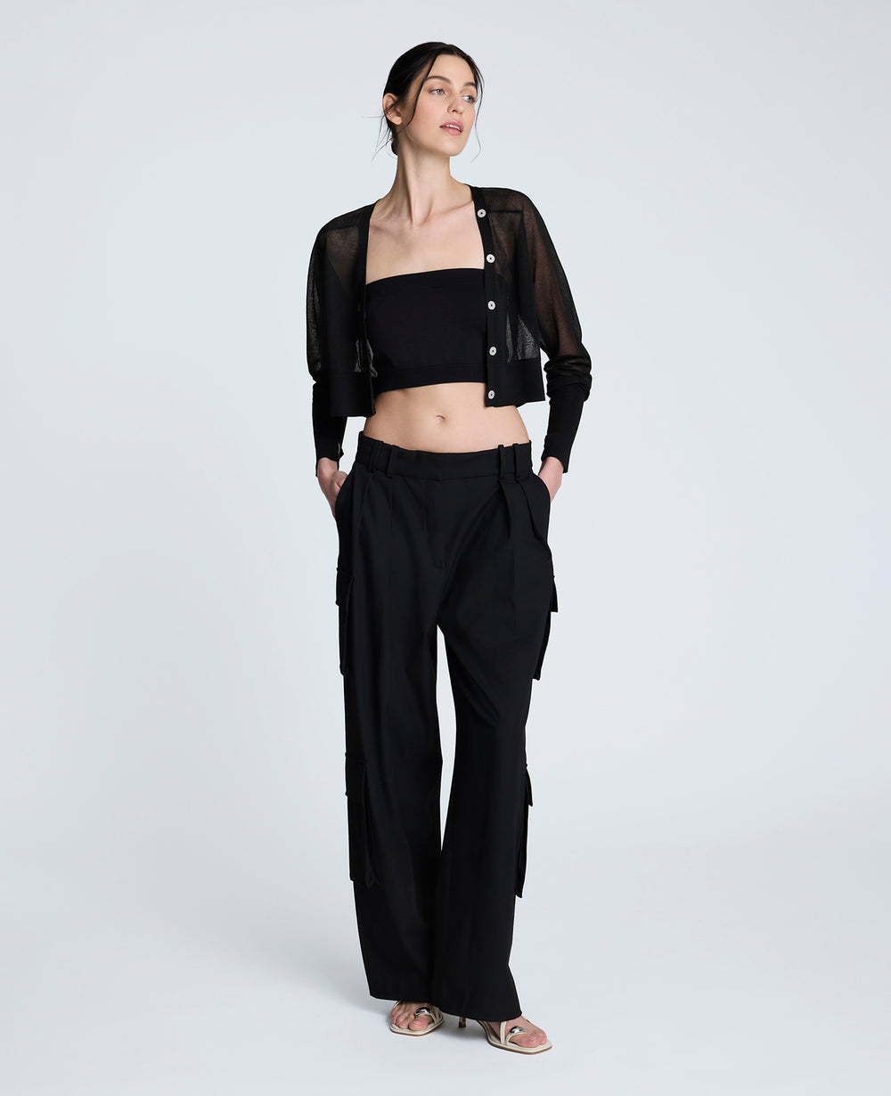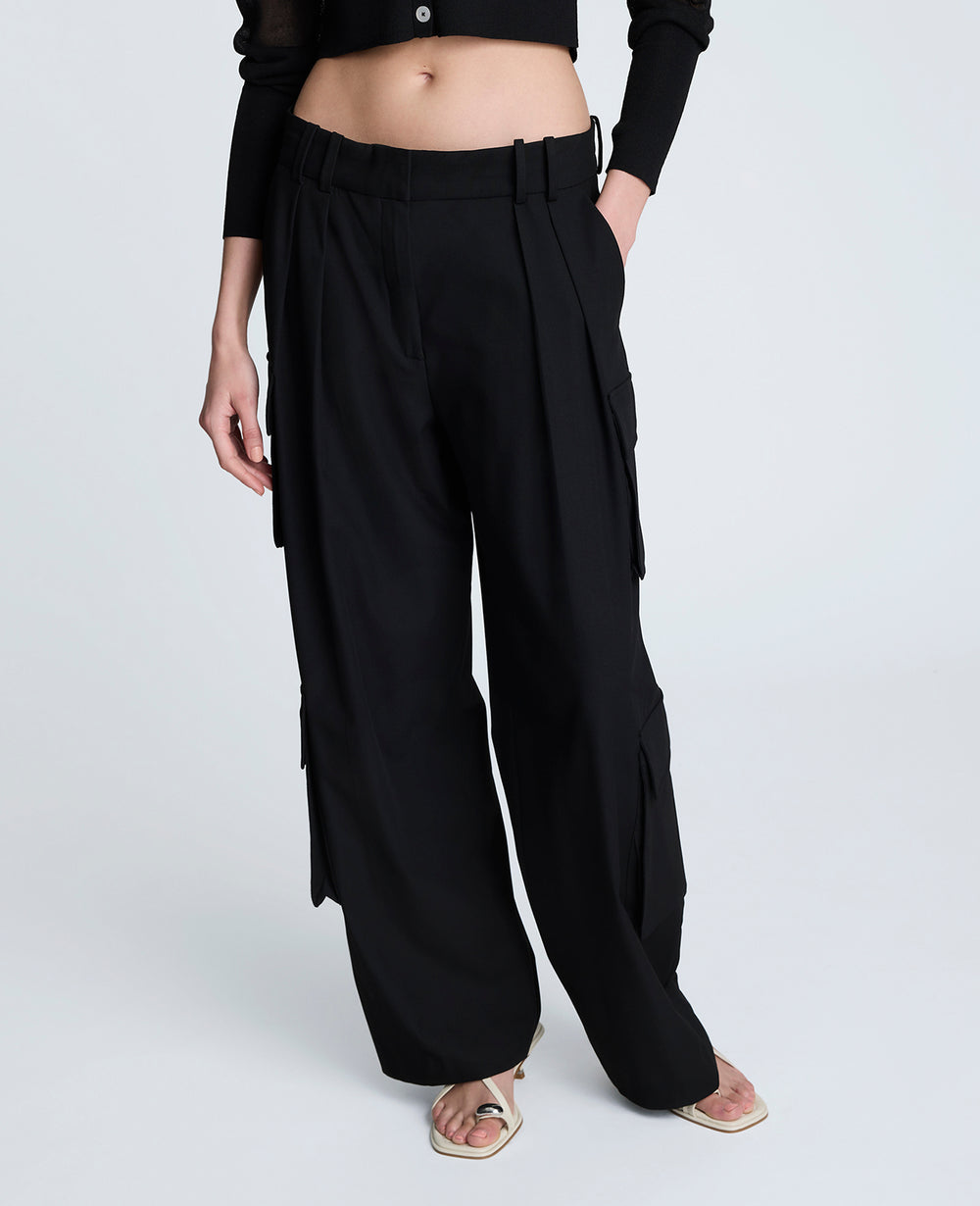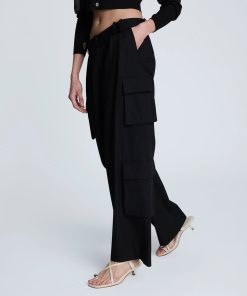 Kenneth Cole Women’s Fly Front Pleated Cargo Pocket Pant | Black
