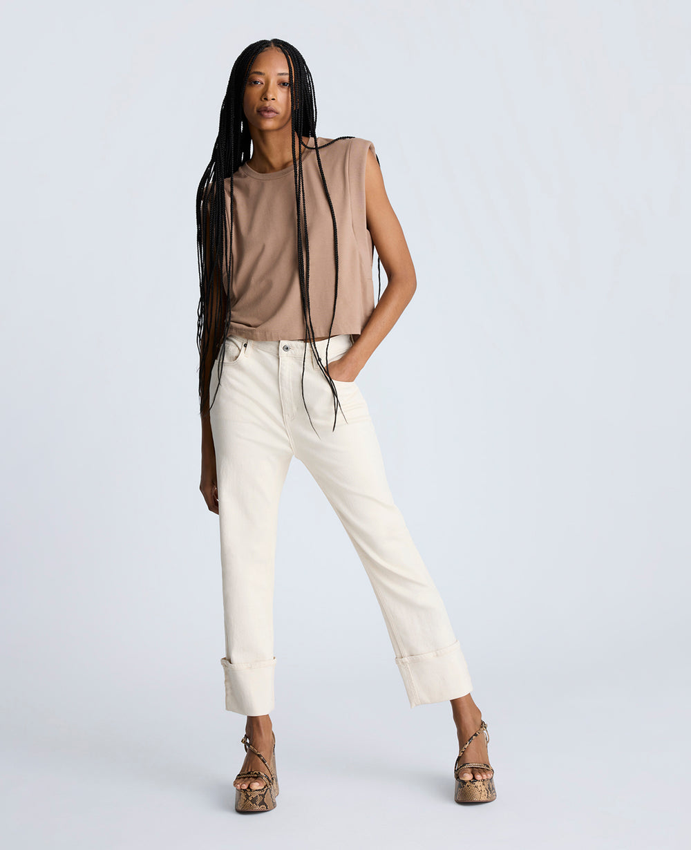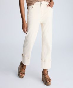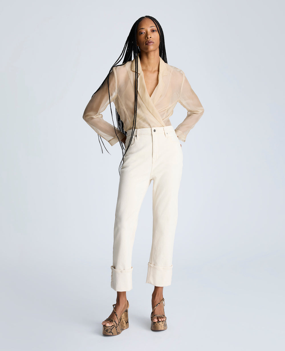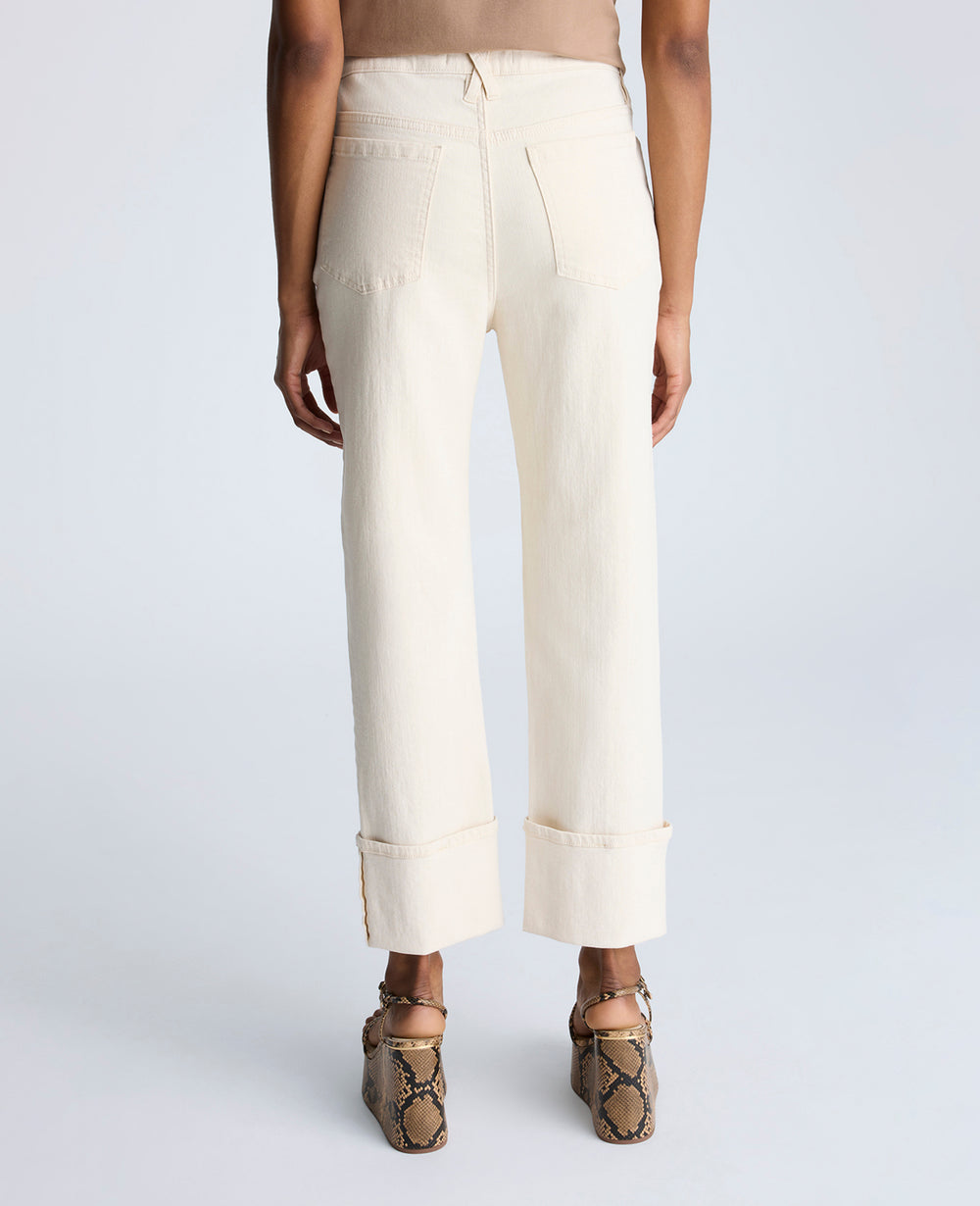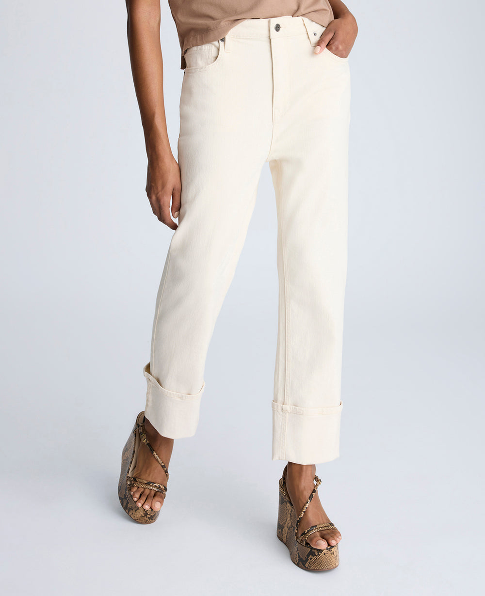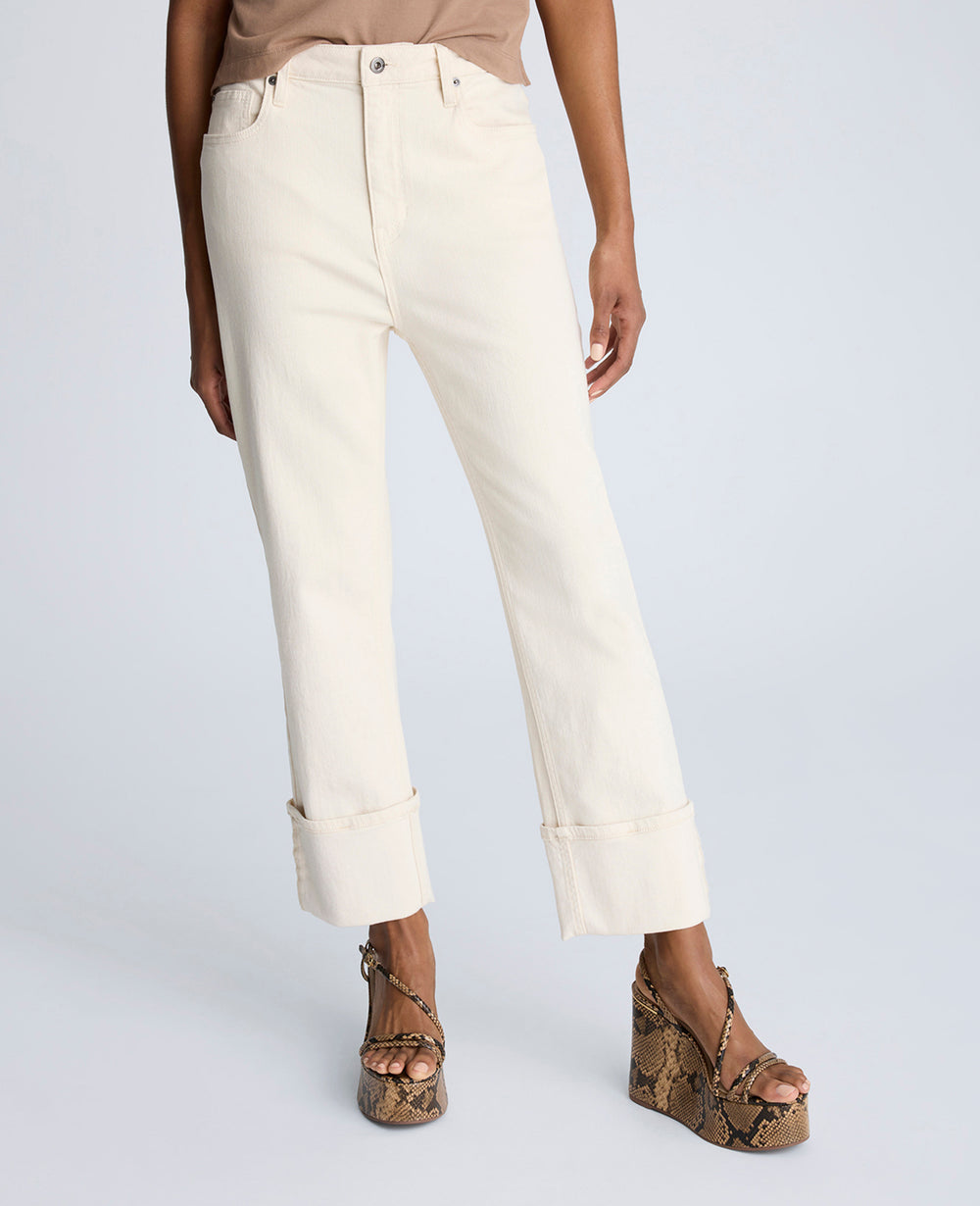- High rise straight leg denim jeans