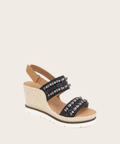 Kenneth Cole Women’s Shoes Gentle Souls – Evora 2 Leather Espadrille Wedge | Black Leather