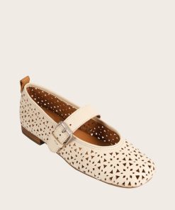 Kenneth Cole Women’s Shoes Gentle Souls – Karla Perforated Leather Mary Jane Flat | White Perf Leather