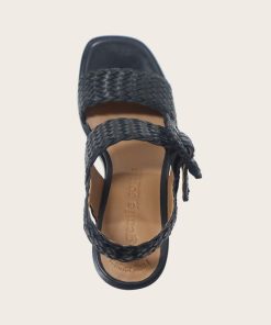 Kenneth Cole Women’s Shoes Gentle Souls – Madylyn Woven Leather Heel Sandal | Black Leather